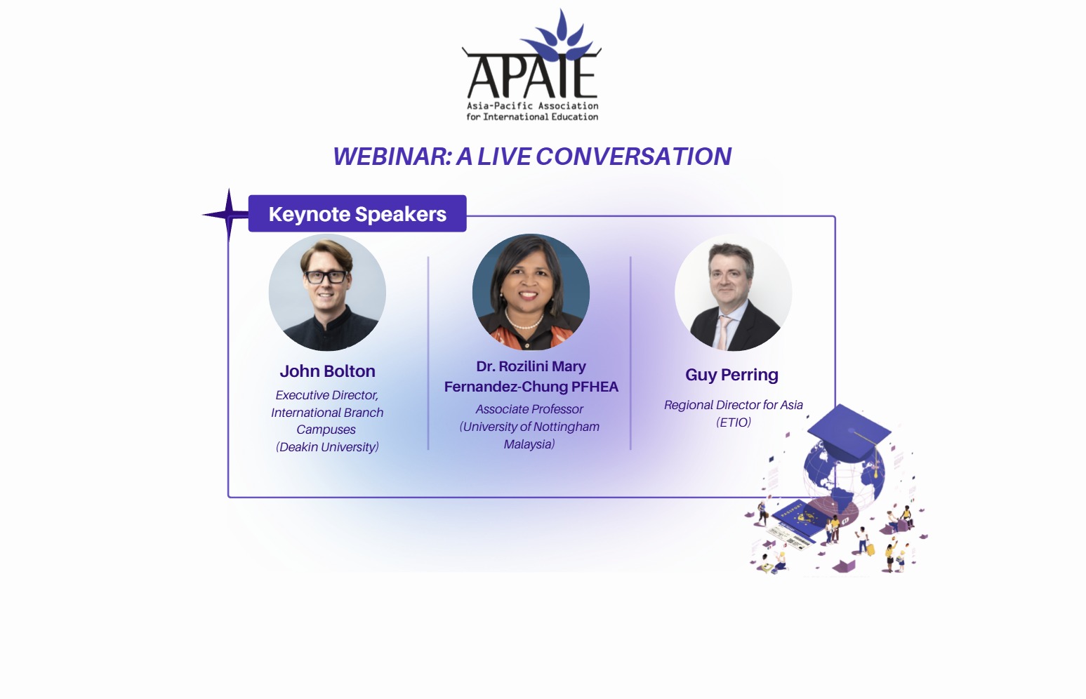 Guy Perring is the Regional Director for Asia at Etio, a leading consultancy and benchmarking firm that provides comparative insights to the education sector, with a focus on internationalisation, enhancing the student experience, and helping institutions ensure their students succeed in both employment and citizenship. With over 25 years of experience in education, Guy has worn many hats—ranging from teacher and administrator to market researcher and consultant. His career includes 12 years at the British Council, where he led a Southeast Asian Regional Transnational Education Project, fostering sustainable partnerships between UK and local institutions. A sought-after speaker, Guy has presented at prominent international conferences such as APAIE, Going Global, QS-APPLE, and the Commonwealth of Education Ministers. An alumnus of Manchester and Durham Universities, he brings a wealth of knowledge and experience to his role in shaping the future of international education.